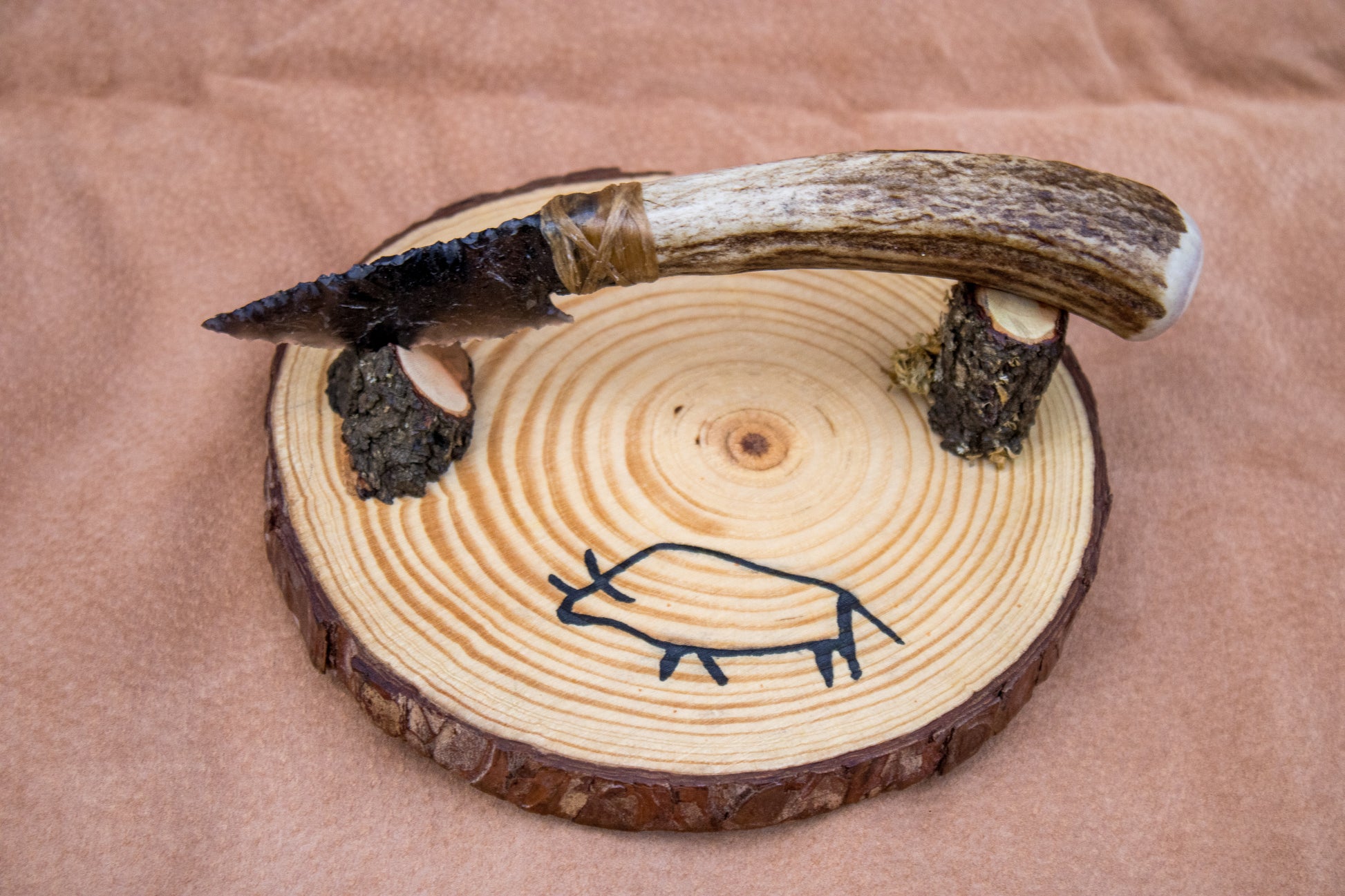 Bowman Lithics Signature Knife #001 – Rainbow Obsidian Tanged Blade with Red Deer Horn Handle