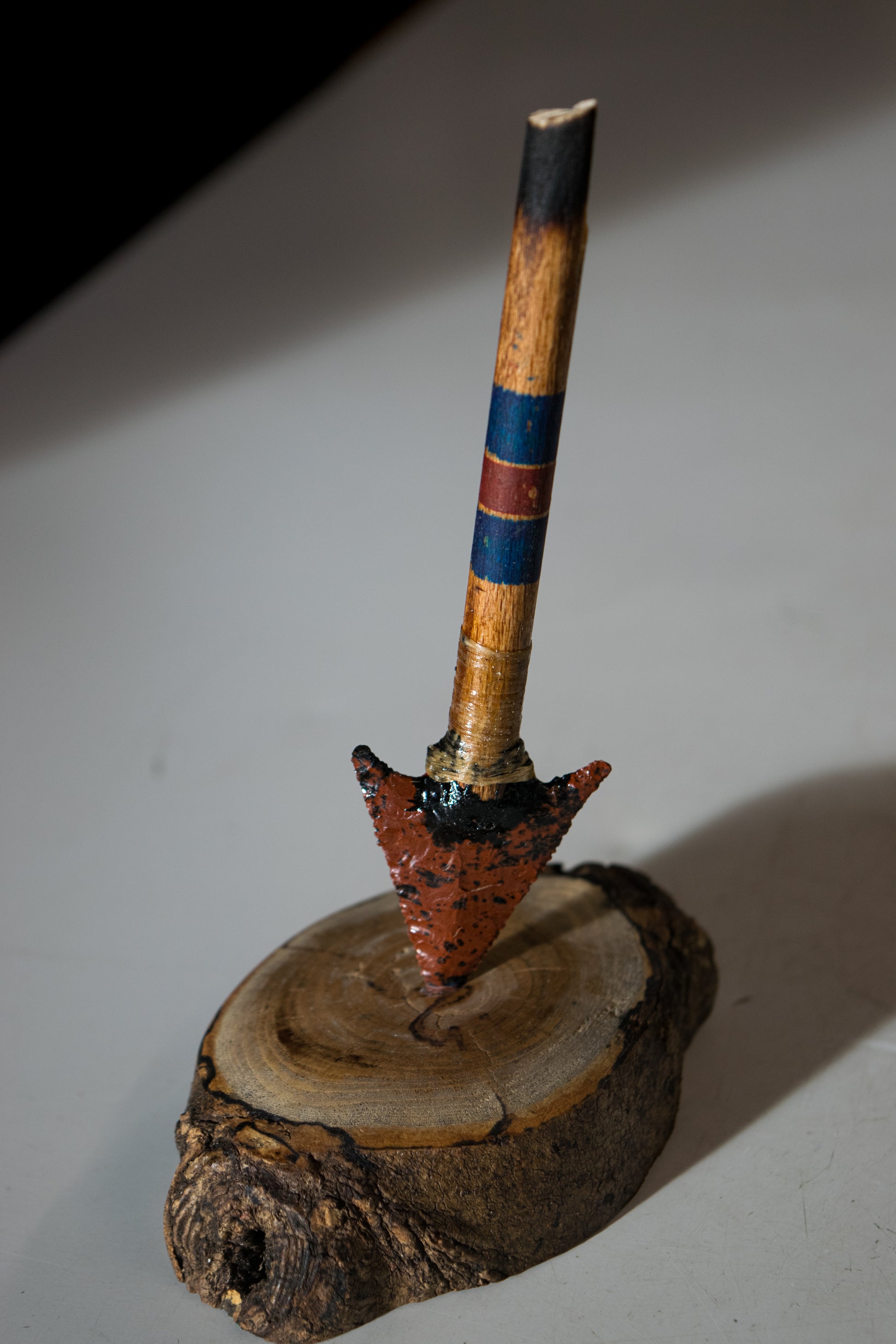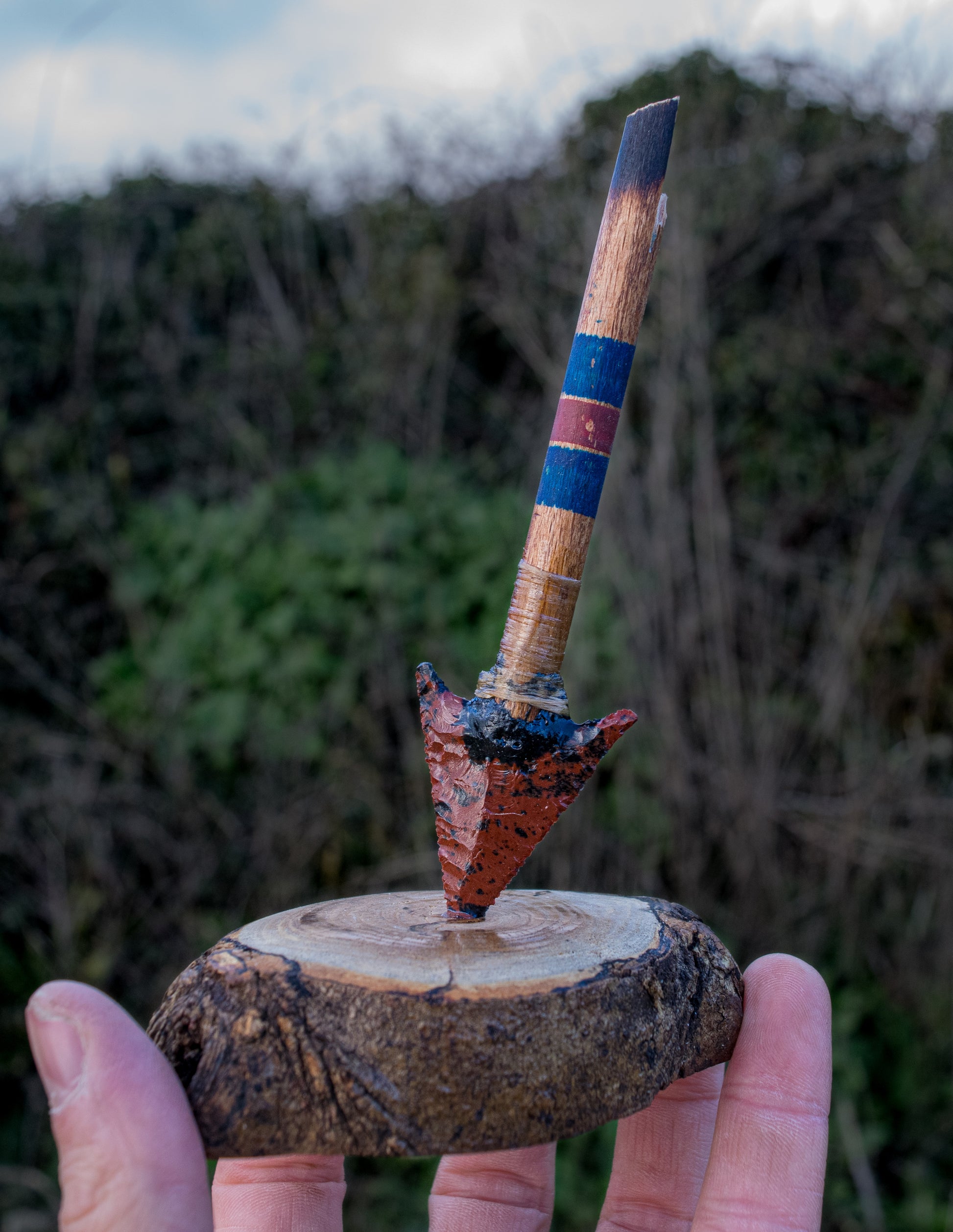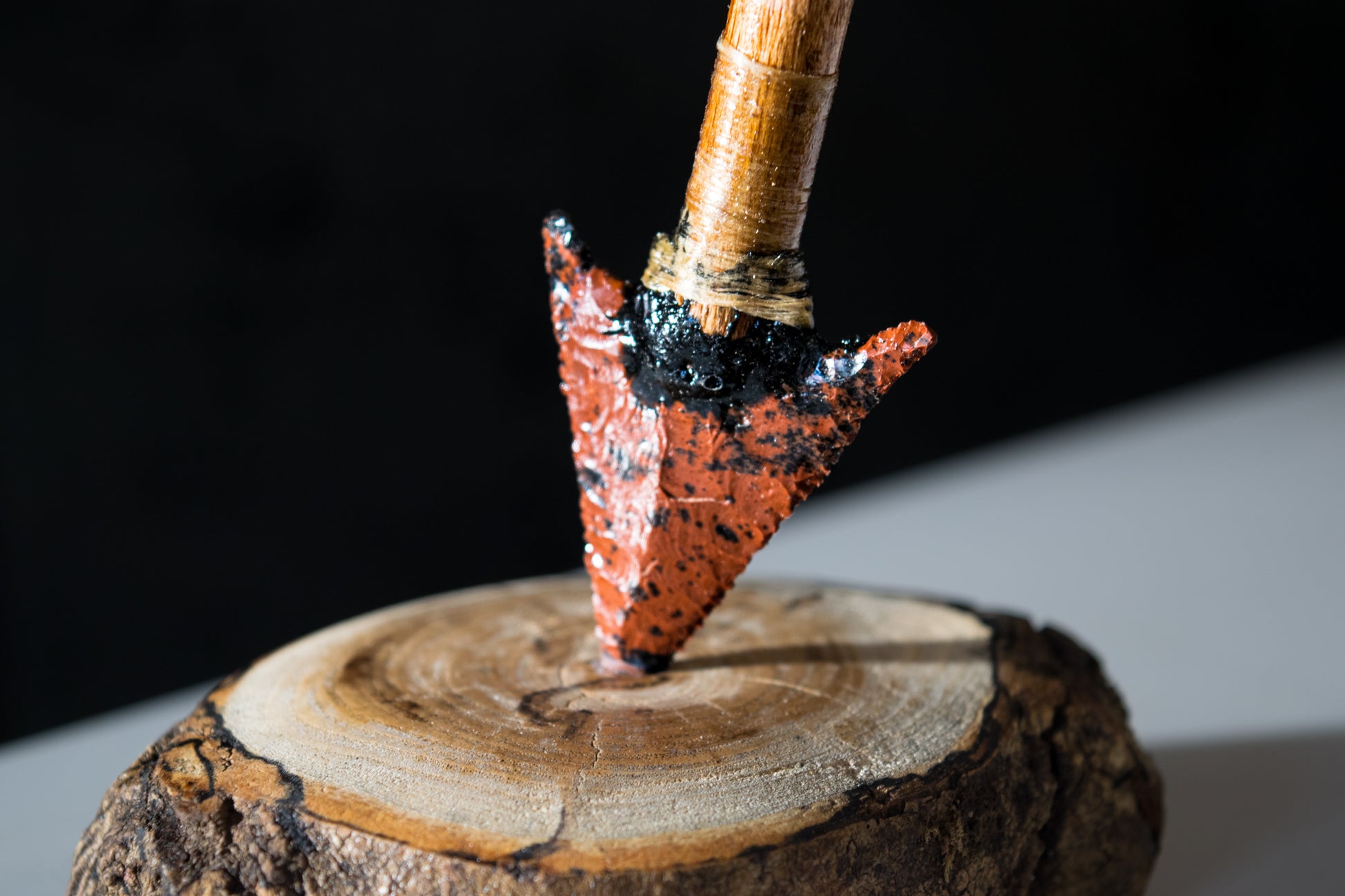 The obsidian has been traditionally mounted using pine pitch, sinew binding and hide glue into a wooden shaft intentionally broken to suggest impact. The result is a sculptural artefact — not a tool, but a study in tension, fracture and heritage.