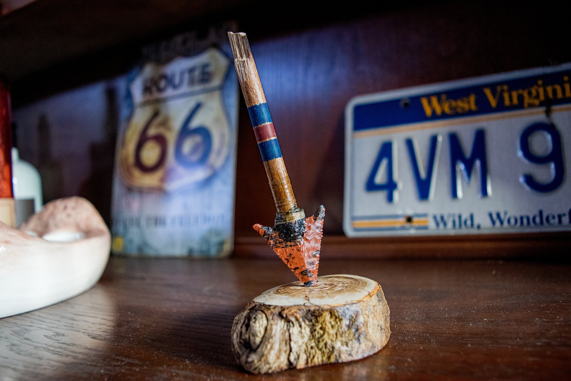 This Impact Desk Companion features a knapped Elko Corner Notched point in mahogany obsidian, shaped in the spirit of Ishi-era craftsmanship — refined, balanced, deliberate.