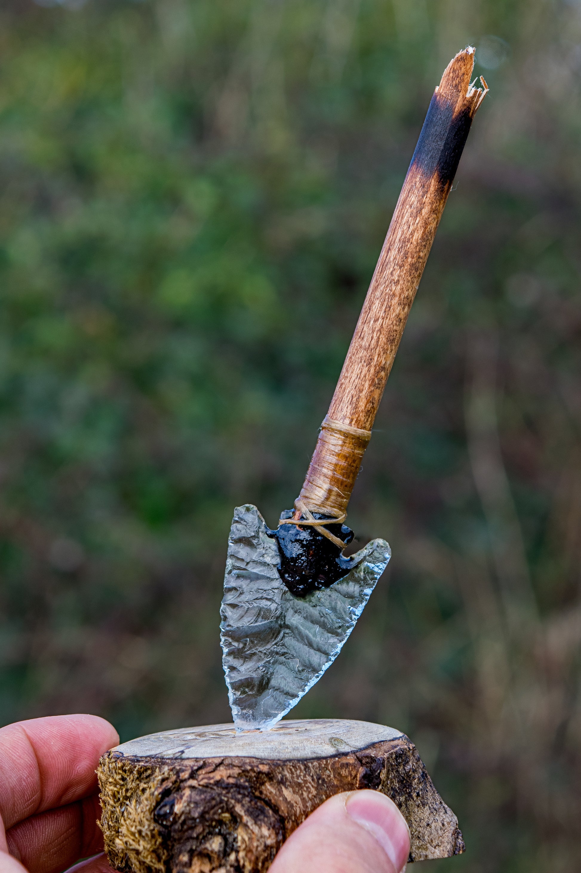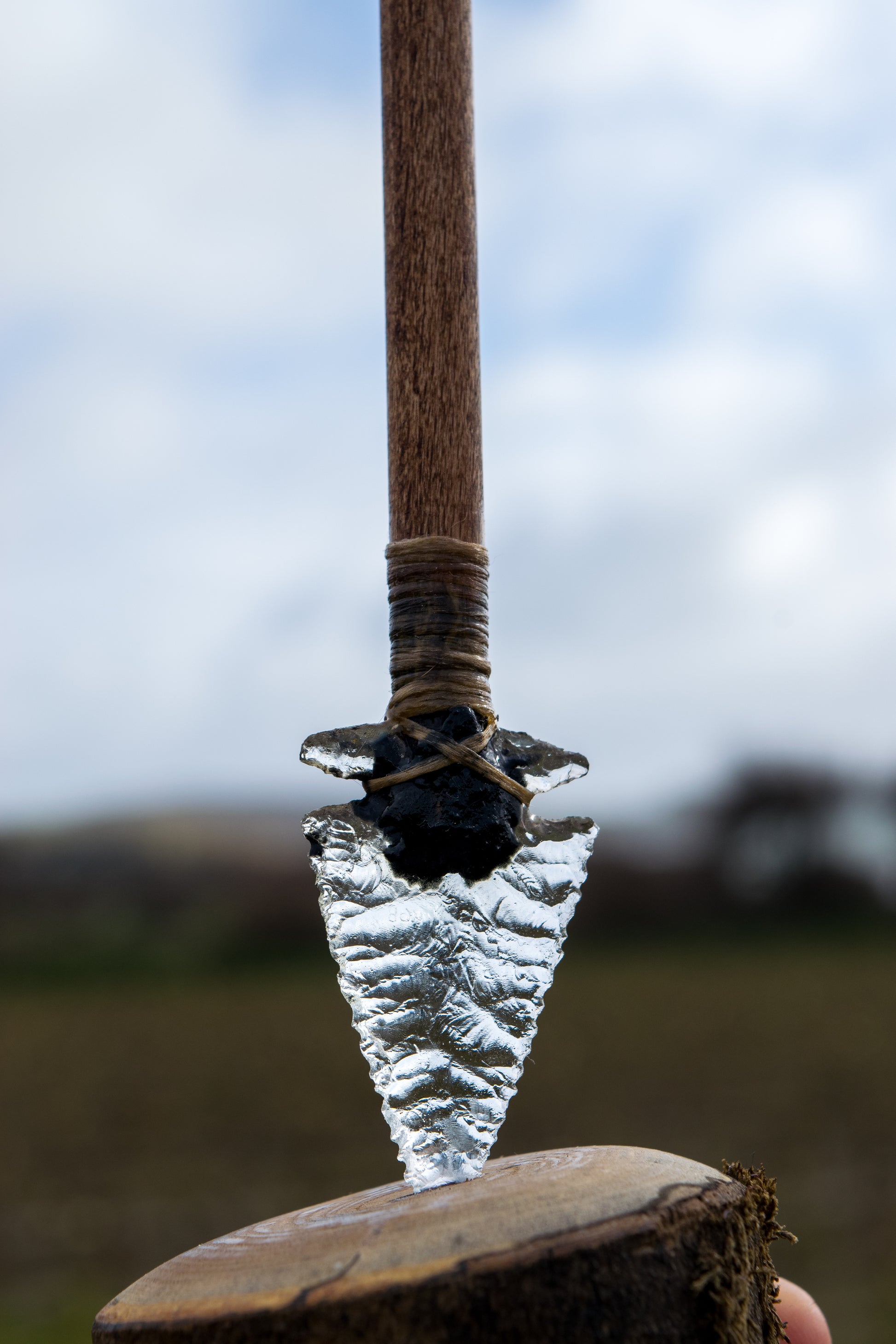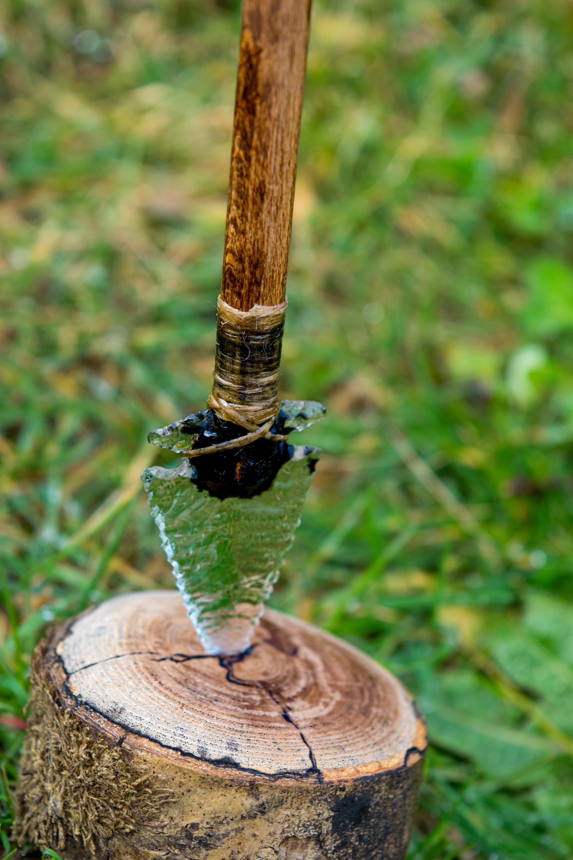 The Studio Glass Edition of the Impact Desk Companion features a knapped glass point traditionally mounted into wood using pine pitch, sinew binding, and hide glue.