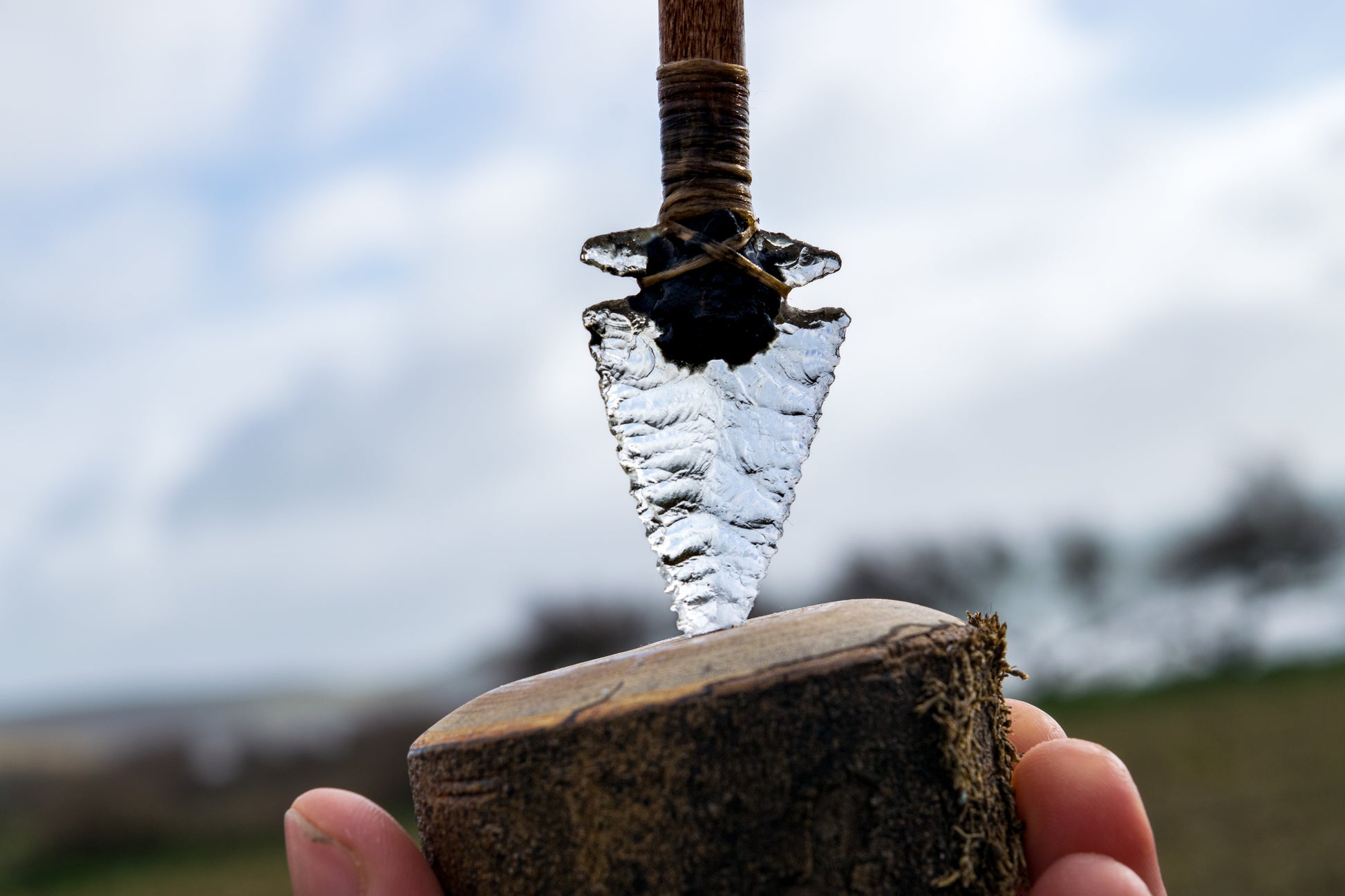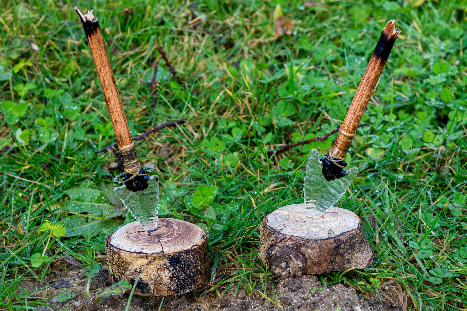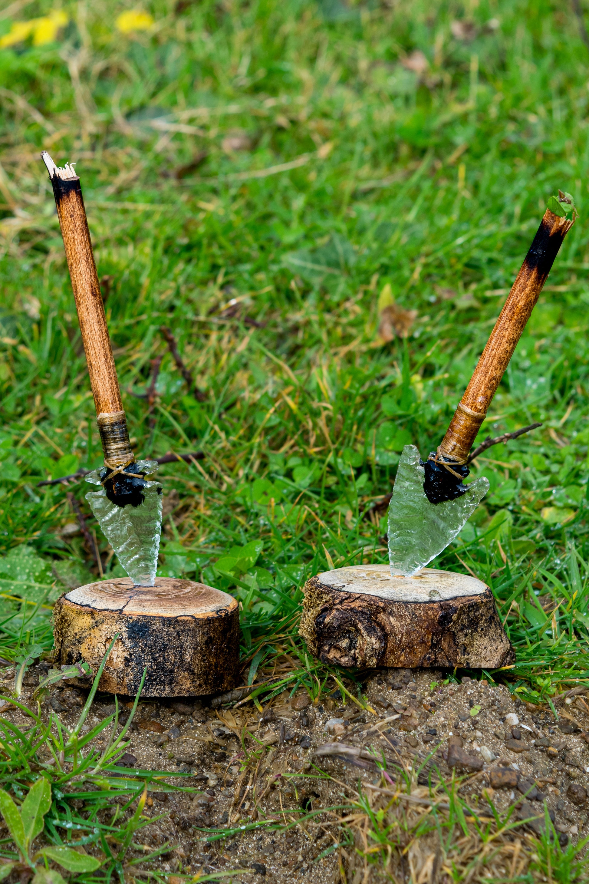 The Studio Glass Edition of the Impact Desk Companion features a knapped glass point traditionally mounted into wood using pine pitch, sinew binding, and hide glue.